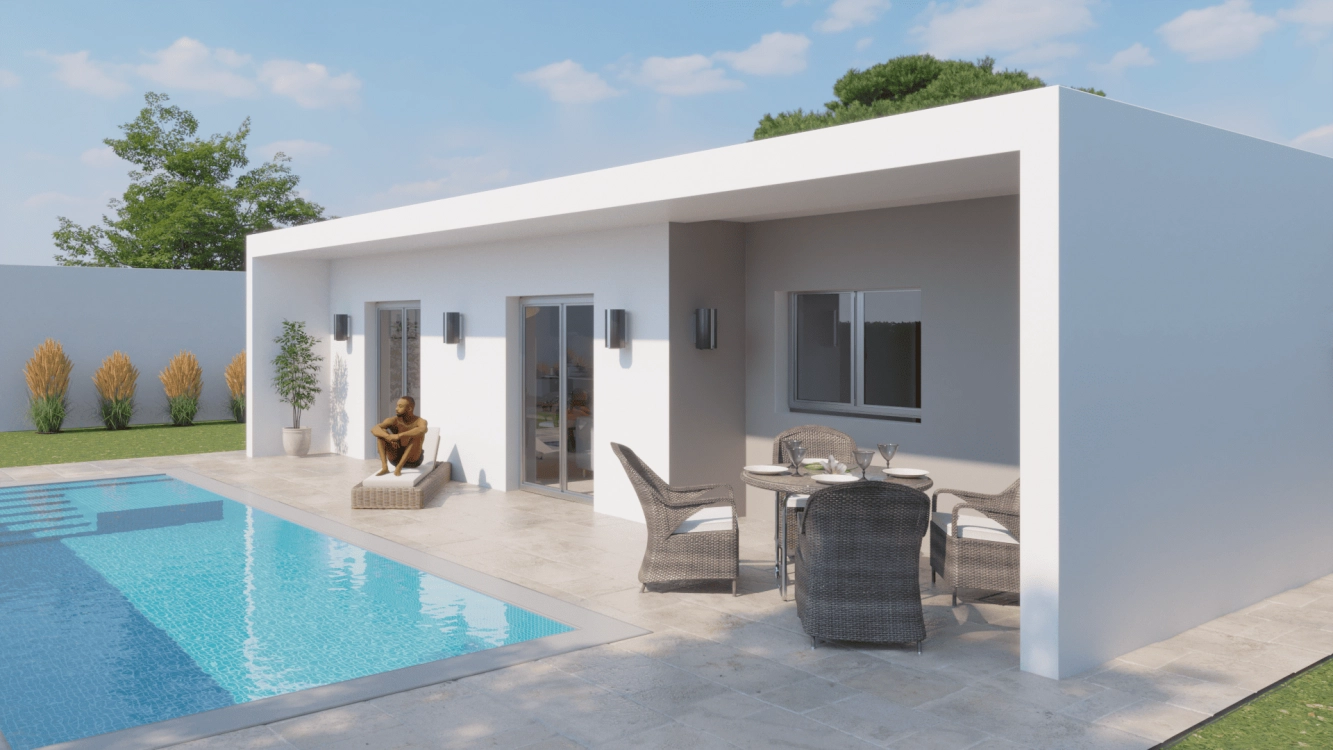 El modelo Mykonos dispone de tres habitaciones, adaptándose a diferentes necesidades familiares, y un baño con acabados de alta calidad. En su exterior, esta casa ofrece un espacio de terraza techada, ideal para relajarse al aire libre o disfrutar de una comida en el exterior. Además, la piscina, ubicada junto a la terraza, es el lugar perfecto para refrescarse en los días soleados, proporcionando un toque de lujo y un ambiente vacacional en el hogar.